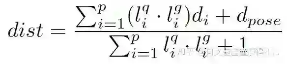 而衡量query与gallery之间的距离则是下图说明。一个query通过网络之后会得到pose guided feature vector和partial feature vectors,query和gallery的pose guided distance很简单,即为两个vector的euclidean distance。而对于partial vector来说呢,只计算未被遮挡部分的对应vector的距离和。判断是否被遮挡的条件是这个part里面是否有retrieved key-point。如果没有则判断是遮挡部分,不参与距离计算。