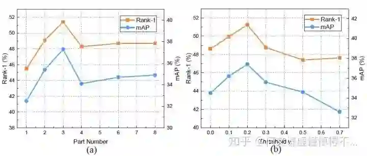 我个人比较关心的retrieved key points数以及判定遮挡点的threshold对reid的效果影响实验文中也有展示,和预期符合的是,并不是点数越多对reid的正面效果越好。