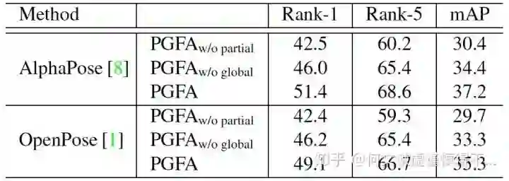 可以看出在pose estimation上表现更好的Alpha Pose对该算法的ReID正向效果更大。