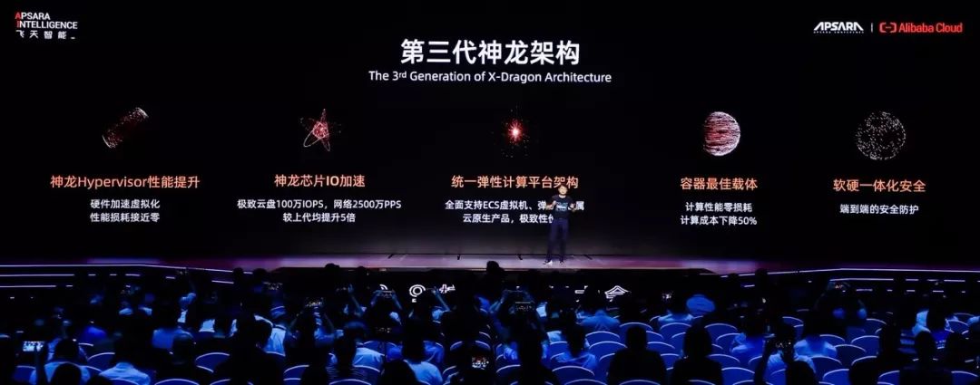 阿里云正式发布第三代自研神龙架构,全面支持ECS虚拟机、裸金属、云原生容器等,贯穿整个IaaS计算平台,并在IOPS、PPS等方面提升5倍性能,用户能在云上获得物理机100%的计算能力。