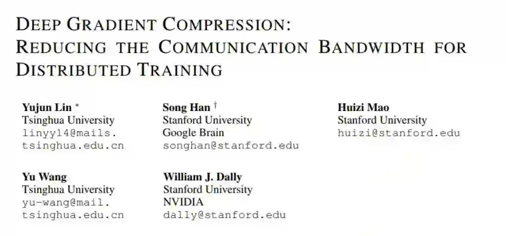 大规模的分布式训练需要为梯度交换提供很高的通信带宽,并依赖昂贵的高带宽网络基础设施,因而限制了多节点训练的可扩展性。当在移动设备上进行分布式训练时(联合式学习),情况将变得更加糟糕,导致更高的延迟、更低的吞吐量以及断续的连接状态。在本文中,我们发现在分布式 SGD 中 99.9% 的梯度交换都是冗余的,因此我们提出了深度梯度压缩方法(Deep Gradient Compression,DGC)以大幅压缩通信带宽。为了在压缩过程中保持准确率,DGC 使用了四个方法:动量修正(momentum correction)、局域梯度修剪(local gradient clipping)、动量因子掩蔽(momentum factor masking)以及预热训练(warm-up training)。我们将 DGC 应用到图像分类、语音识别和语言建模中,评估数据集包括 Cifar10、ImageNet、Penn Treebank 和 Librispeech Corpus。在这些场景中,DGC 在不降低准确率的情况下达到了 270 倍到 600 倍的梯度压缩率,将 ResNet-50 的梯度规模从 97MB 压缩到了 0.35MB,将 DeepSpeech 的梯度规模从 488MB 压缩到了 0.74MB。DGC 可以帮助我们在通用的 1Gbps 以太网上执行大规模的分布式训练,并能促进移动设备上的分布式训练开发。