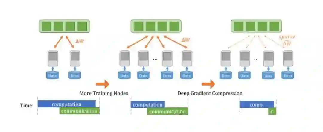 图 1:DGC 可以减少梯度交换时间,提高多节点训练的可扩展性,并对分布式训练进行加速。