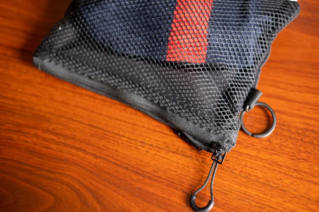 这个拉链袋也是在机场的 MUJI to Go 购买的,分大小两个型号,我各买了一个,大号用来存放 T 恤。小号用来存放内裤、袜子。这个产品有两个拉链袋,外袋是一个透气的网袋,内袋则是密封的。我会用外袋放置干净的衣物,用内袋放置洗完还未晾干的衣物,这样一来就做到了干湿分离。