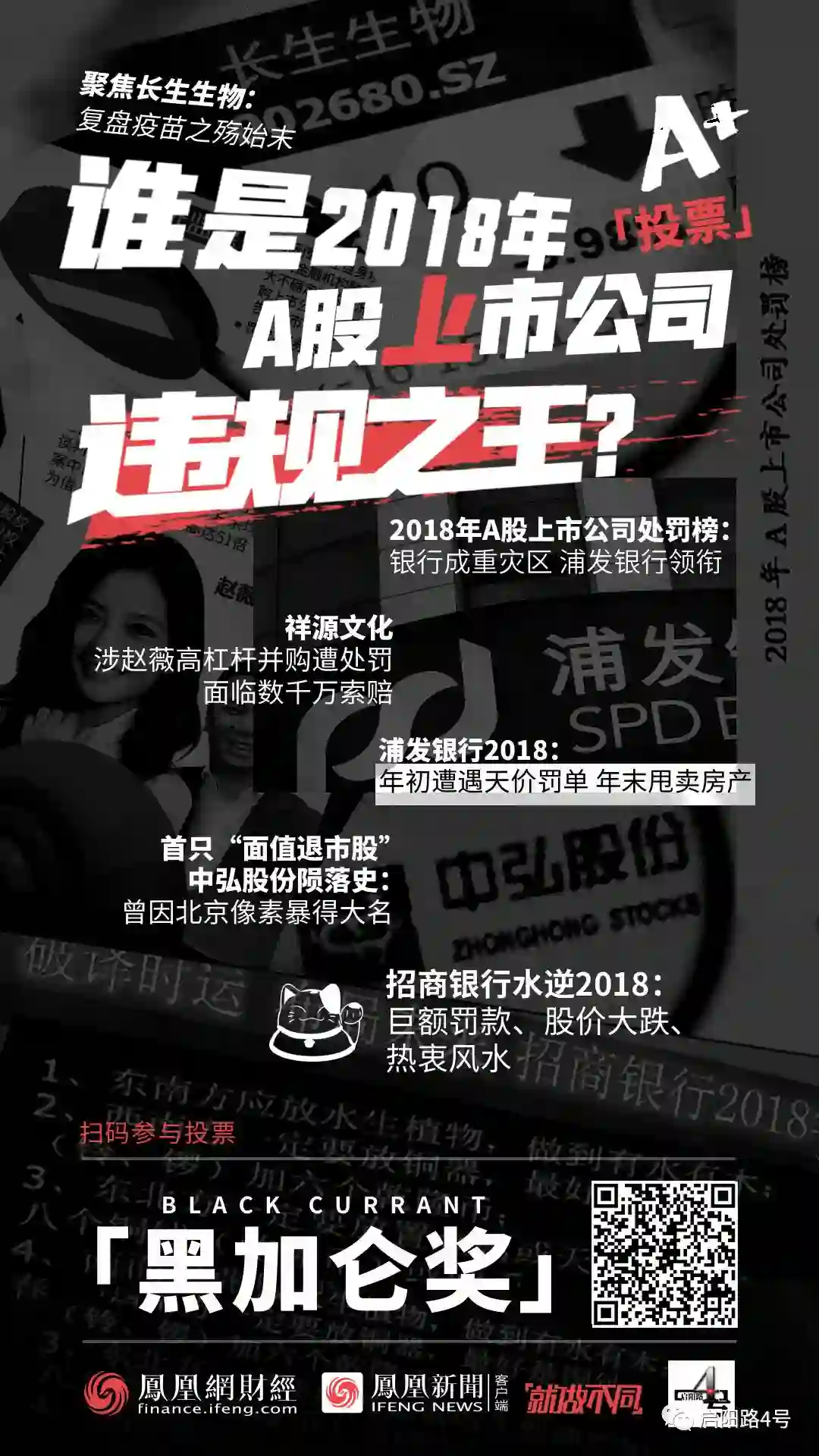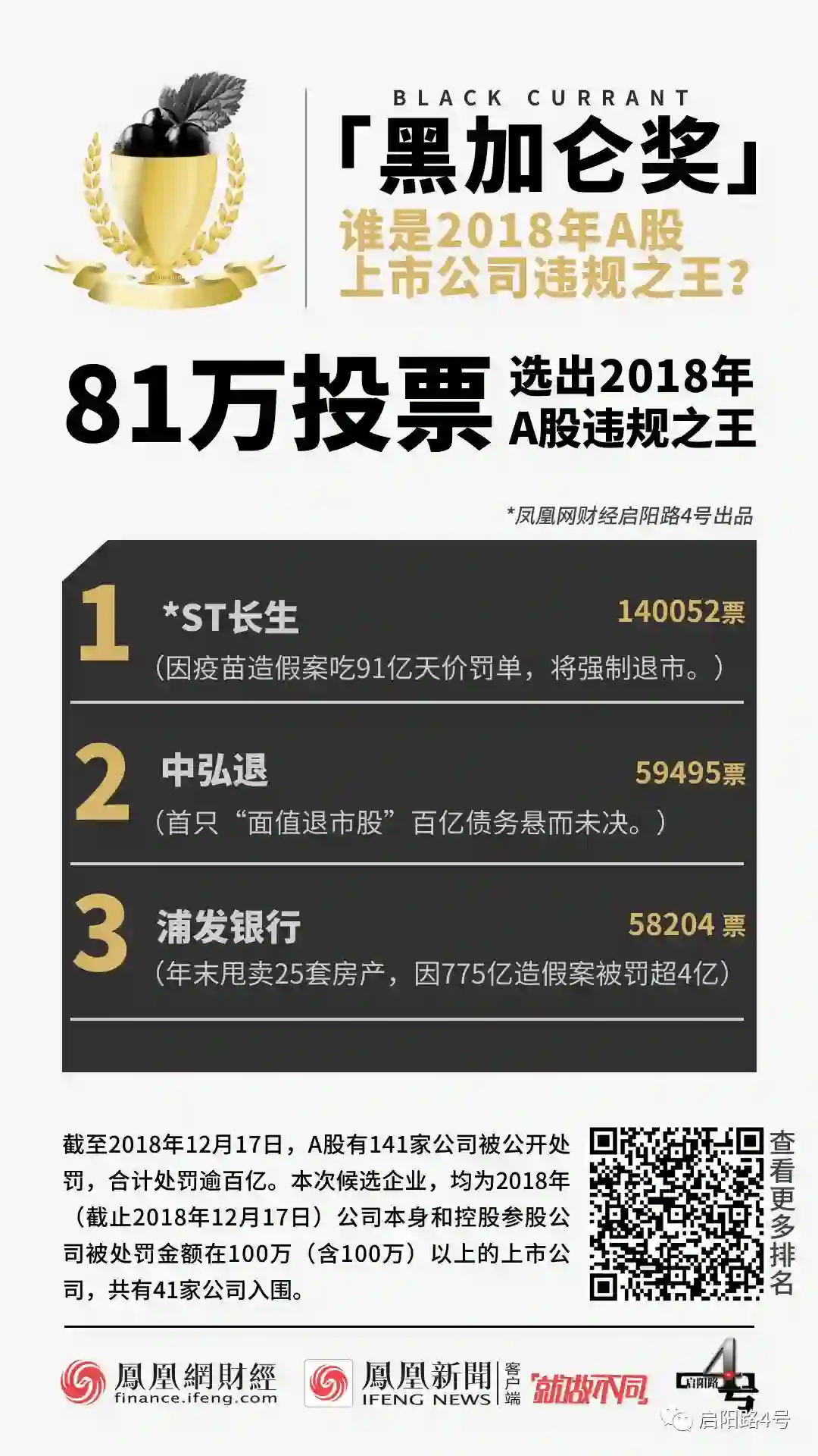 为净化资本市场,自2018年12月19日起,凤凰网财经启阳路4号发起了“黑加仑奖|谁是违规之王?2018年十大违规A股公司”评选活动。