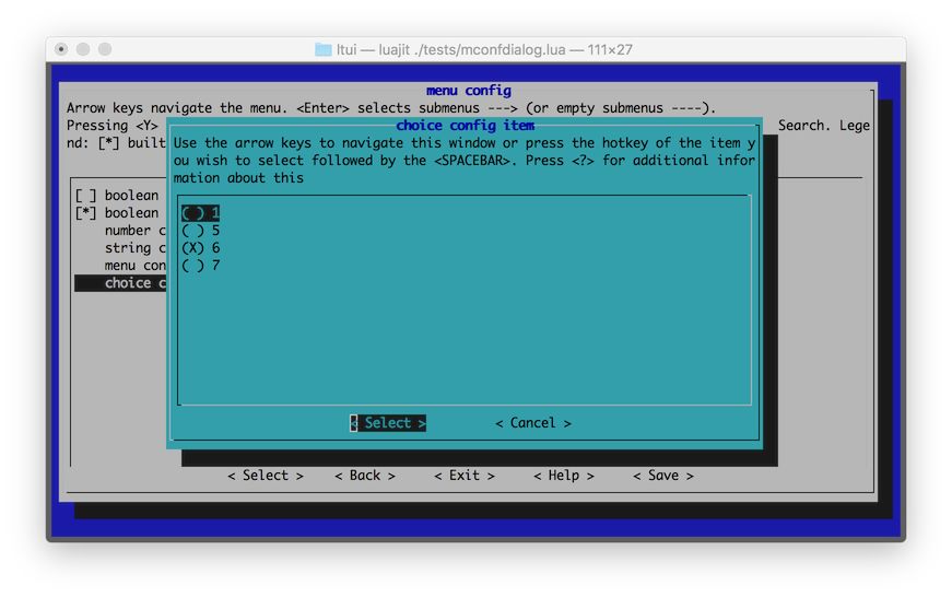 此框架源于 xmake 中图形化菜单配置的需求,类似 Linux Kernel 的 menuconf 去配置编译参数,因此基于 curses 和 lua 实现了一整套跨平台的字符终端 UI 库。而样式风格基本上完全参照的 kconfig-frontends,当然用户也可以自己定制不同的 UI 风格。