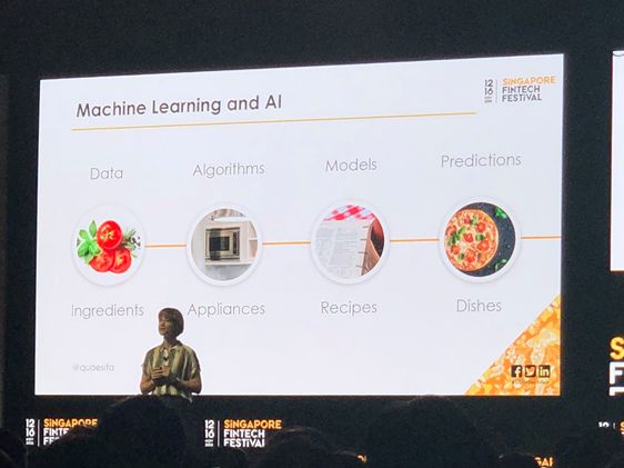 她形容,机器学习就像在厨房做菜,可以分成四个部分。第一个部分是数据,也就是原料。第二是演算法,这就是厨具。第三是模型,这就像食谱一样。第四是预测,也就是最终的菜色。
