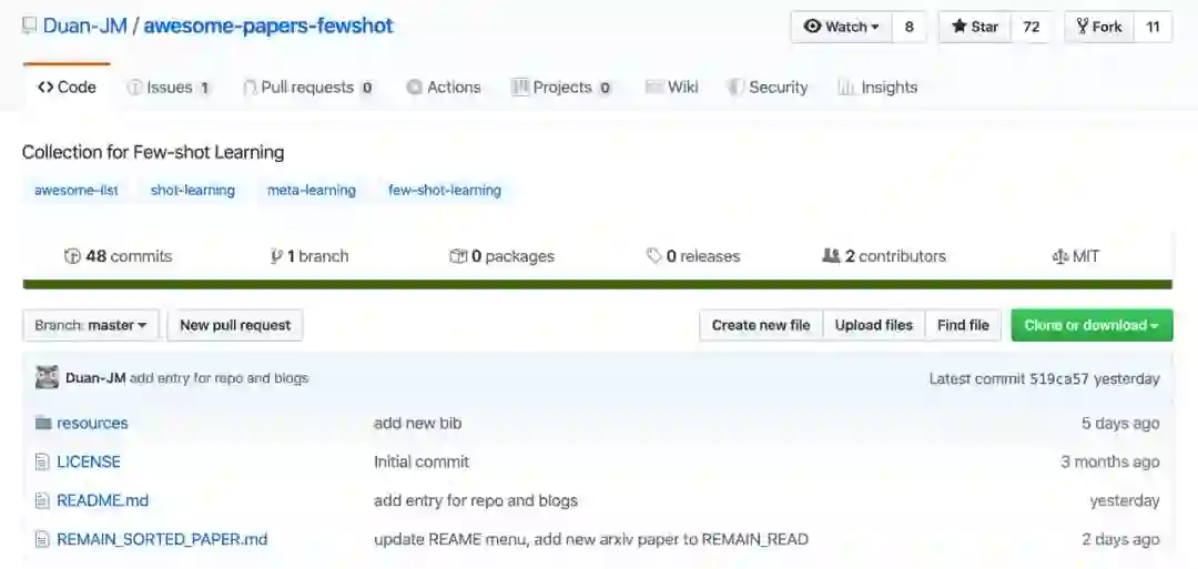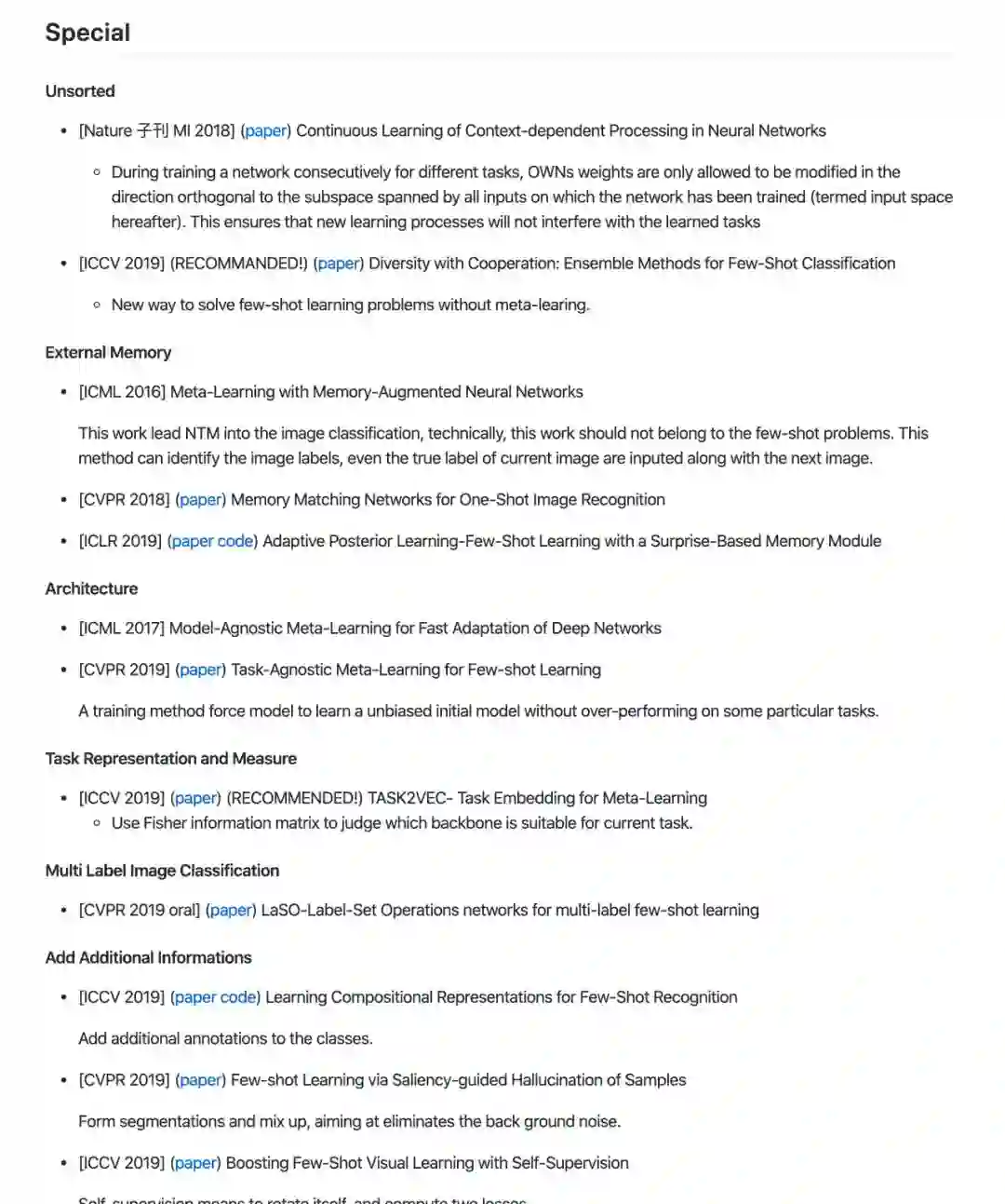 【导读】Few-Shot Learning 由于其任务的特殊性,以及其应用可能带来的巨大价值,吸引了大量人工智能领域学者的目光。为了帮助广大希望入坑小样本学习的同胞减少入坑搜集论文的时间成本,Duan-JM同学,在Github上分享了《awesome-papers-fewshot》库,收集了近几年顶会中的小样本学习的文章。对few shot learning感兴趣的同学不要错过。
