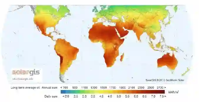 图片来源:https://upload.wikimedia.org/wikipedia/commons/9/9d/SolarGIS-Solar-map-World-map-en.png.