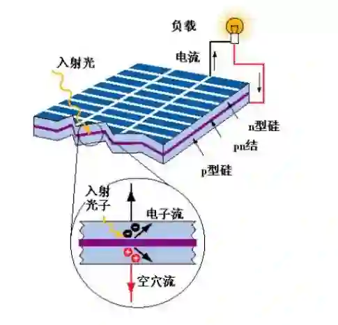 基于光伏效应的太阳能电池工作可分为以下三个过程: