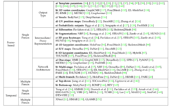 在图4中,我们演示了一些有代表性的方法。我们根据它们采用的人体模型对它们进行分类。
