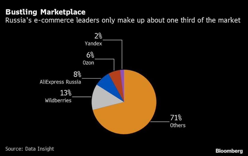 这一领域还有一个小玩家 Yandex NV,它在俄罗斯电商市场份额约为2%。Yandex 同时运营着俄罗斯领先的搜索引擎和该国最大的网约车服务。在结束和俄罗斯联邦储蓄银行(PJSC)的业务合作后,Yandex 向俄罗斯亿万富豪 Roman Abramovich 以及其他投资者融资10亿美元,计划继续深耕电商领域。