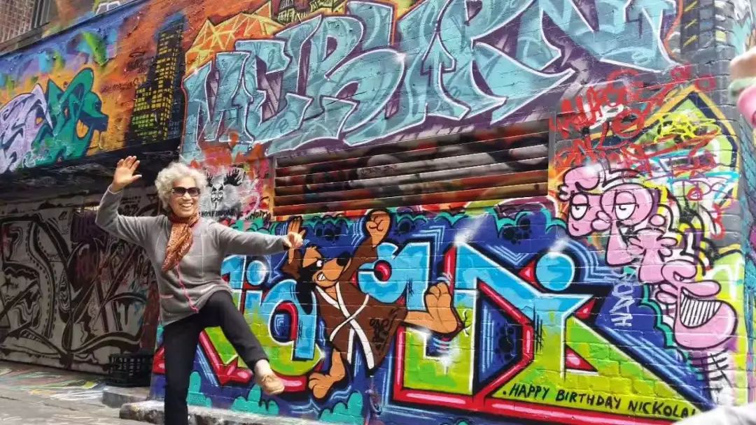 @徐冰lesley:我的妈妈,今年77岁,15年前经历过一次严重车祸,过马路时被一辆大卡车撞至昏迷,四肢断了三肢。现在,她不但完全康复了,而且还在墨尔本涂鸦街摆高难度pose拍照,稳稳地,我妈真酷。