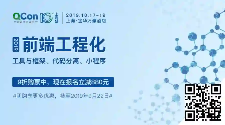 更多精彩案例请关注 QCon 上海 2019 ,这里还有富文本编辑器的技术在蚂蚁金服的演进、百度的前端可视化,实时渲染与生成设计思路,还有苏宁的解决小程序同构难题的转换器方案、360 的 PC 小程序之路、云(Serverless)+ 端(Electron)一体化在美团点评的探索等话题。点击「阅读原文」或识别二维码查看各个互联网公司一系列经历实战考验的前端实践。大会 9 折报名最后一周,立减 880 元,有任何问题欢迎联系票务小姐姐 Ring:17310043226(微信同号)
