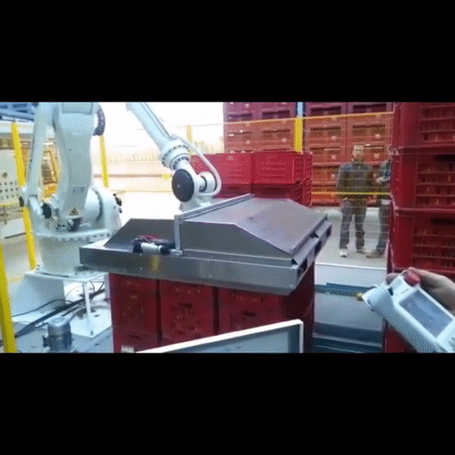 △ 一些食品厂商会专门雇人把一箱一箱的水果扒拉出来,但也有人雇佣机器人倒水果。