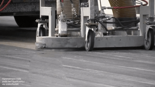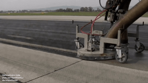 △ 机场会定期去除飞机轮胎留下的橡胶,从而增加下面的水泥或沥青和飞机的摩擦,减少打滑的可能性。这种橡胶胎印去除设备通常利用高压水枪把橡胶喷除。除了机场,赛车跑道也需要进行这样的处理。