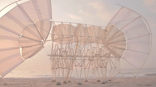 Strander Beast 是物理学家转行的艺术家 Theo Jansen 在90年代发明的利用风能行走的装置。被做成玩具后受到世界人民的欢迎。网友 crabfuartworks 把它和仓鼠球连在了一起。