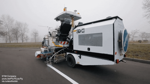 △ 自动驾驶道路划线机。你没看错,车上没有司机。