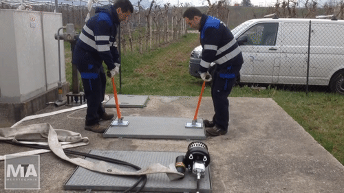 △ 巨重的下水道盖子是怎么用磁性开启工具打开的。