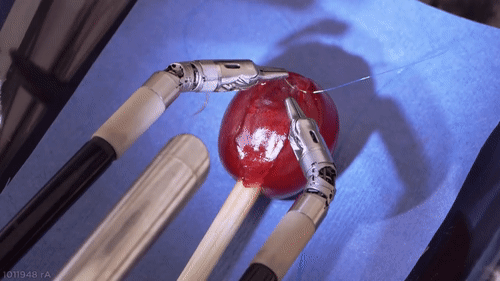△ 澳洲癌症治疗机构 Peter MacCallum Cancer Centre 展示了一个叫做达芬奇的手术机器人在一个玻璃瓶里给一粒葡萄缝皮的过程。目前我国几十多家医院拥有达芬奇手术机器人。