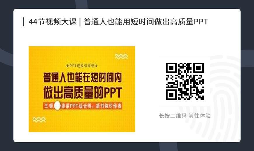这个课程教你从基础操作、字体配色,到逻辑梳理、后期修改全面系统的学习PPT,让你的汇报与付出成正比,绝不付诸东流。
