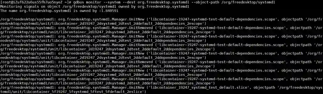使用下边的命令,观察 org.freedesktop.systemd1 上接受到的所以请求,可以看到,在正常系统里,有大量 Unit 创建删除的消息,但是有问题的系统里,这个 bus 上完全没有任何消息。