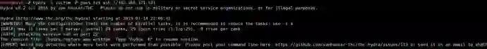 2. 使用msf、hydra等工具加载字典对目标ssh服务开展爆破行为,这里使用hydra来做演示。