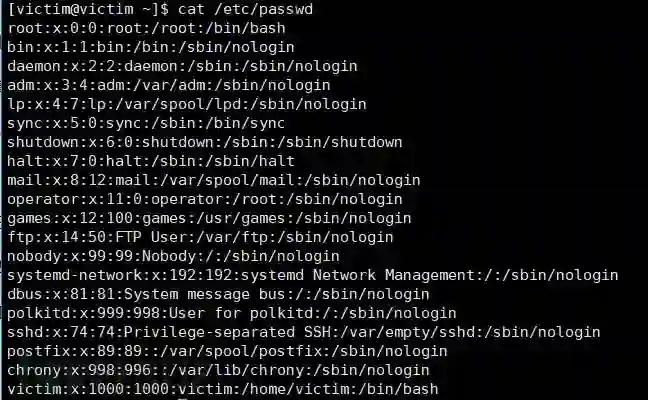 分别执行passwd victim 和passwd root命令修改victim和root账户密码。