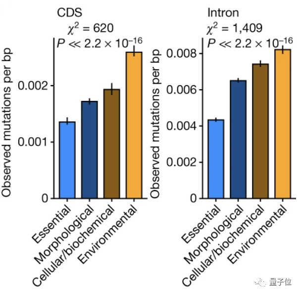比如说,在对生存起决定性作用的必需基因区域,其突变率就几乎下降了2/3。