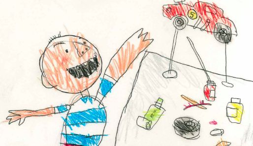 有一天,他的母亲给他寄来一本他5岁的时候画的涂鸦,画的都是他小时候干的各种“坏事”,比如钻到圣诞树里,偷吃饼干罐里的饼干,在床上跳来跳去……还有他歪歪扭扭的写下的两个大字——"No"和" David",这是当年他最常听到,也是唯一会拼写的两个字。