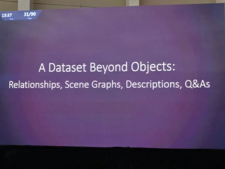 经过三年的准备后,李飞飞团队推出了Visual Genome数据集,包含了10万张图像、420万条图像描述、180万个问答对、140万个带标签的物体、150万条关系以及170万条属性。这是一个非常丰富的数据集,它的目标就是走出物体本身,关注更为广泛的对象之间的关系、语言、推理等等。