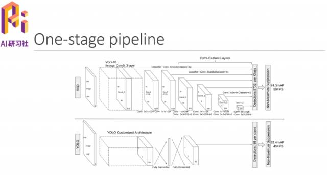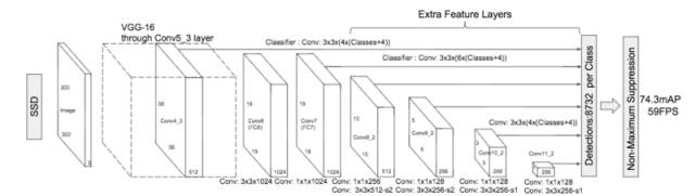第二个同样是目标检测的算法,SSD(Single Shot MultiBox Dectector)。这是另一个基于深度学习的物体检测模型,他的特点主要是检测的速度在能保证精度下保持非常快的速度,除此之外,该物体检测算法在大目标的检测下有比较好的效果。