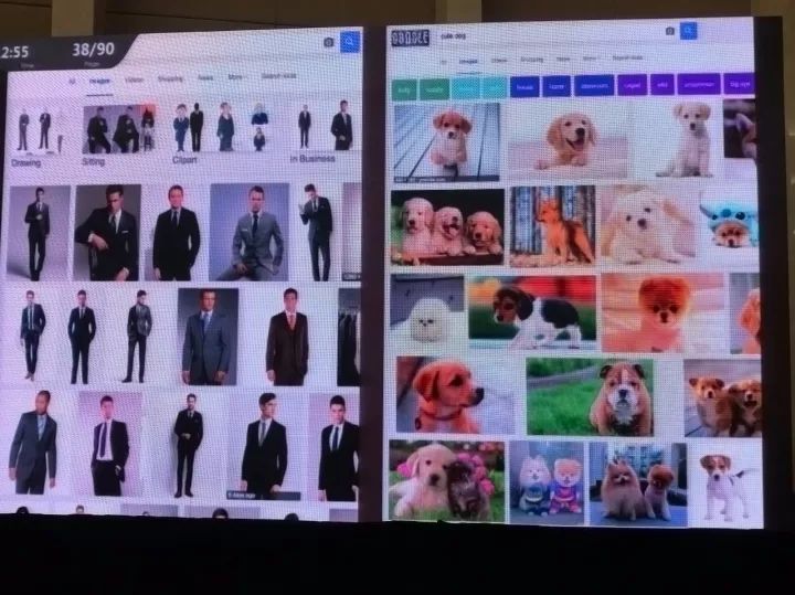但是当你搜索“穿西装的男人抱着可爱的小狗”的时候,就得不到什么好结果。它的表现在这里就变得糟糕了,这种物体间的关系是一件很难处理的事情。