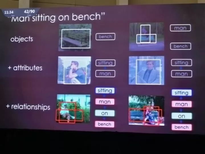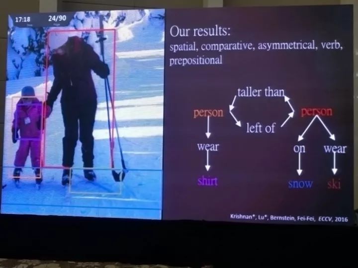 在李飞飞团队ECCV2016的收录论文中,他们的模型已经可以预测空间关系、比较关系、语义关系、动作关系和位置关系,在“列出所有物体”之外,向着场景内的物体的丰富关系理解迈出了坚实的一步。