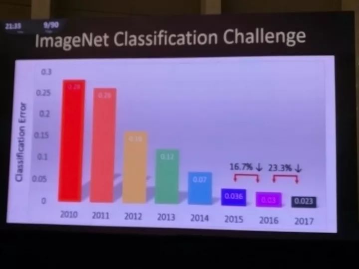 从2010年以来,从 2010 到 2017,ImageNet 挑战赛的物体识别错误率下降到了原来的十分之一。到 2015 年,错误率已经达到甚至低于人类水平。这基本表明计算机视觉已经基本攻克了简单的物体识别问题。