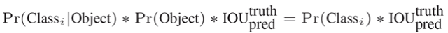 综合反映基于当前模型候选区域内存在目标的可能性 Pr(Object) 和候选区域 (bounding box) 预测目标位置的准确性 IOU(pred|truth)。