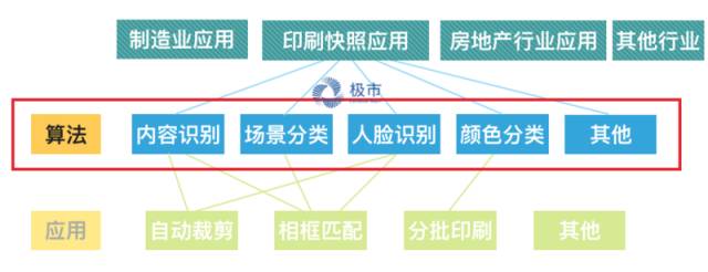 而技术项目的组合,可以帮助我们是去实现更多行业内的目前人工完成的工作,例如实现自动裁剪、通过根据图片的内容、场景的分类、人脸信息等,匹配出合适的相框作为推荐,根据不同颜色的印刷材料做不同的印刷批次排序等等。