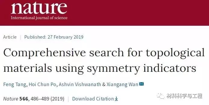1、《Nature》正刊刊登南京大学万贤纲团队研究成果:“渔网式搜索”揭秘近万种拓扑材料