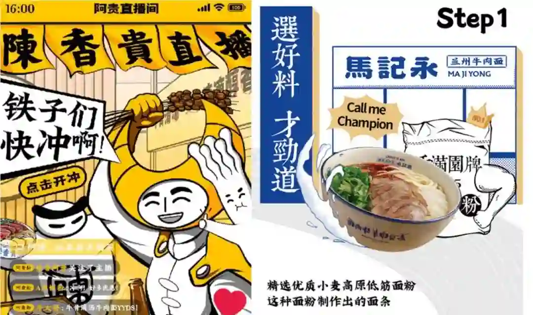 以张拉拉、马记永、陈香贵这三家新式兰州拉面馆为例。张拉拉打出“五代传承”的广告语,通过门店纯木色的装修风格突出品牌匠心,以手撕牛肉为卖点;马记永以兰州牛肉面创始人马耀山为品牌背书,打出“不负中华牛肉面”的口号;陈香贵在门店内布置了“梦回兰州”“地道兰州味、飘香两百年”等标语,以“牛股清汤”为卖点,并推出IP形象“阿贵”,通过人格化运营,与消费者互动。