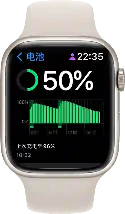 今年 Apple Watch Series 7 再次提高了常亮显示 (Always-On display) 的屏幕亮度,根据官网介绍,即使当手腕下垂时,屏幕亮度在室内条件下也有 70% 的提升。实际对比来看,新款 Apple Watch 的息屏显示亮度确实比老款有提升,通过表盘指针、刻度,应用图标的色彩等方面都能看出来。虽然从我的使用场景来说,日常佩戴 Apple Watch 时的息屏显示亮度已经足够亮了,几乎没有不抬手看不清时间的情况,但是这项特性的加入,确实也让这块屏幕的观感变得更「讨喜」了,尤其是在色彩方面。不要忘了,Apple Watch 的屏幕也变大了,这些屏幕上的新特性,加上 watchOS 系统带来的新功能,毫无疑问都会导致功耗提升。好在,Apple Watch Series 7 的续航水平继续与老款手表保持一致,官方公布的全天续航时长依然长达 18 小时,可以看出 Apple 不论是在硬件还是在软件方面都对功耗优化下了不少功夫。实际上,如果你阅读了新款 Apple Watch 的参数规格,就会发现一个有趣的细节:Apple Watch Series 7 配备的是一枚 64 位双核 S7 芯片,速度最快比配备 S5 芯片的 Apple Watch SE 快了 20%;而 Apple Watch Series 6 配备的 S6 芯片的运行速度,根据此前给出的数据,同样比 S5 芯片最快提升 20%,似乎间接证明了 Apple Watch Series 7 在性能方面与 Apple Watch Series 6 相比没有提升。因此,不难猜测,这枚 S7 芯片的主要升级应该就是在功耗方面,才让 Apple Watch Series 7 继续拥有全天可用的续航水平。说是全天续航,从我个人的使用情况来看,续航能力其实还要更好。早上洗漱之后戴上 Apple Watch,白天正常收发手机通知、处理一些简单事务,比如在手表上查看、添加待办事项、回复信息等等;Apple Watch 还要全天监测我的各项身体数据,比如心率、步数、运动状态、能量消耗等等,到了晚上还剩 50% 的电量,也是经常的事。由此可见,虽然 Apple Watch 的续航时长还是没有突破「一天」大关,但是作为日常用表,在多数情况下也完全不会引起「电量焦虑」。即便如此,还是有不少人觉得一块手表也得一天一充是件非常麻烦的事,Apple Watch 比起一些同类型的可穿戴设备续航水平确实也不算好。所以,Apple 从另一方面在一定程度上弥补了这项不足,那就是充电速度。根据官方说明,Apple Watch Series 7 的充电系统架构经过升级,搭配 USB-C 快速充电线,把电量从零充到 80% 仅需约 45 分钟,速度比 Apple Watch Series 6 快了 33%。实际测试来看,使用 Apple 官网在售的 mophie 三合一无线充电底座为快没电的 Apple Watch充电,一小时还充不满 50%;使用新款 Apple Watch 随附的 USB-C 充电线进行充电,仅 40 分钟电量就从 38% 充到 96%,速度确实快了不少。