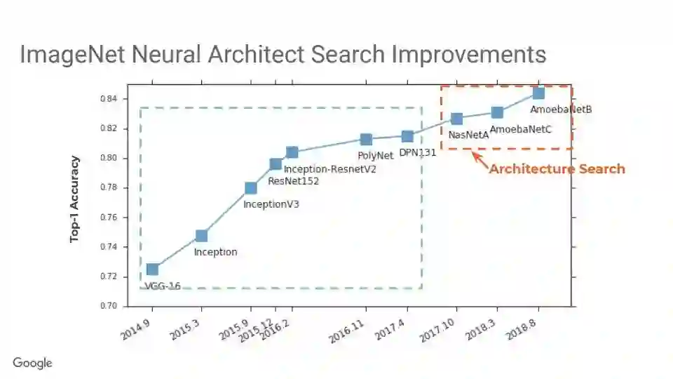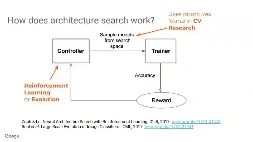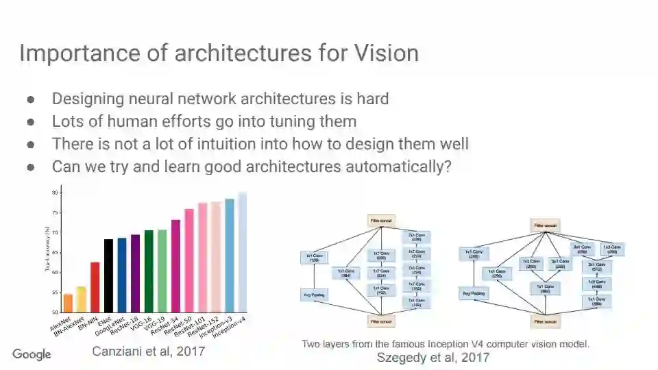 【导读】神经网络结构搜索(Neural architecture search, NAS)是一种自动化设计人工神经网络的技术。由于NAS能设计出与手工设计神经网络结构相当甚至优于手工设计结构的网络,而成为近两年深度学习社区的研究热点,火爆全球。来自Google的科学家Barret Zoph,今日在ICCV2019上,做了《Neural Architecture Search and Beyond》的报告,讲述了Google在NAS方面的最新研究进展。