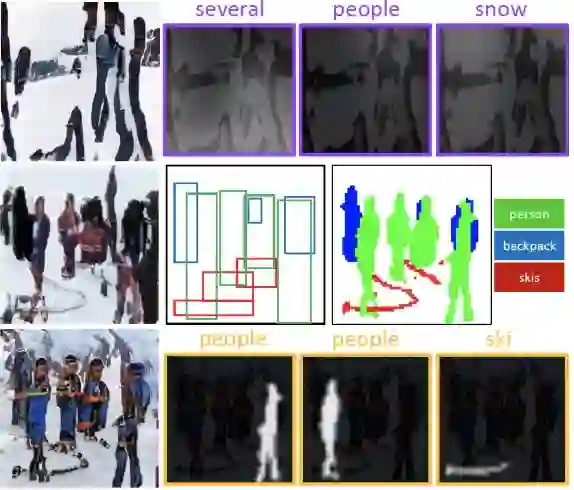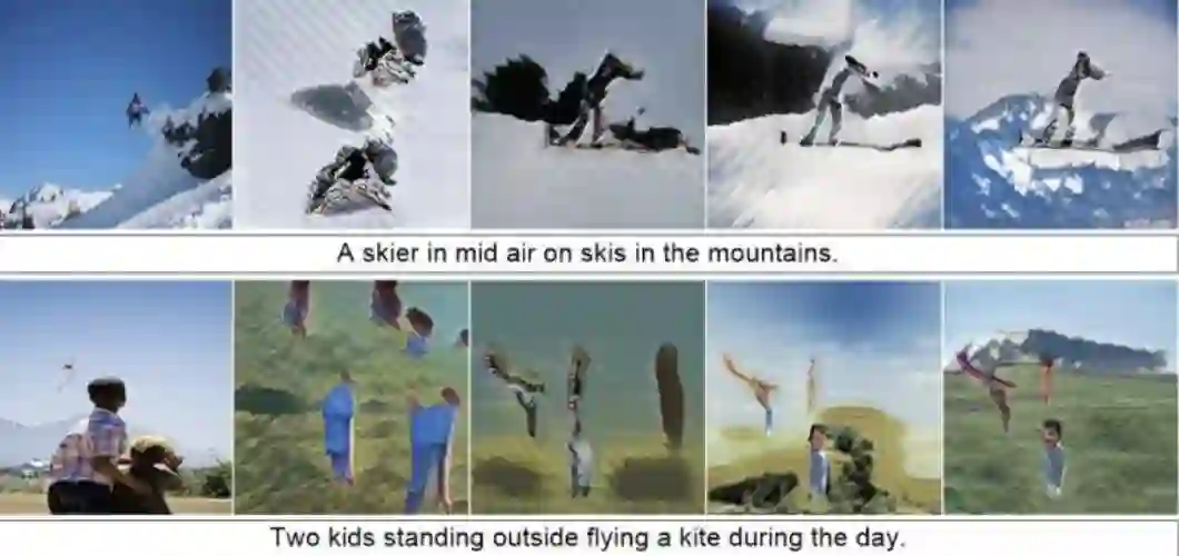 举个例子,如果要根据“几个人穿滑雪服的人在雪地里”这句话生成一张图片,那么需要对不同的对象(人、滑雪服)及其交互(穿滑雪服的人)进行建模,还需要填充缺失的信息(例如背景中的岩石)。