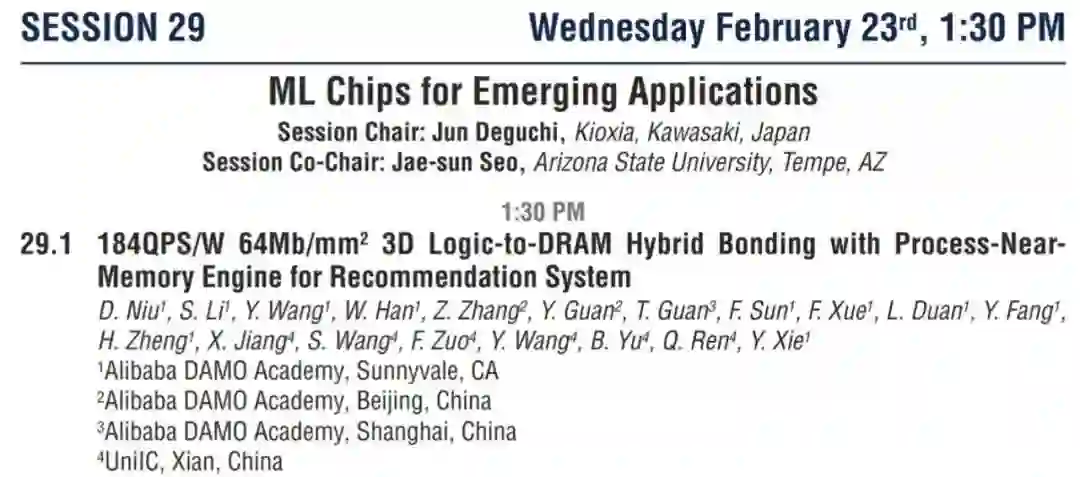 达摩院在存算一体架构方向上已拥有大量成果,在 ISCA、MICRO、HPCA 等顶级计算机体系结构会议上发表多篇论文。