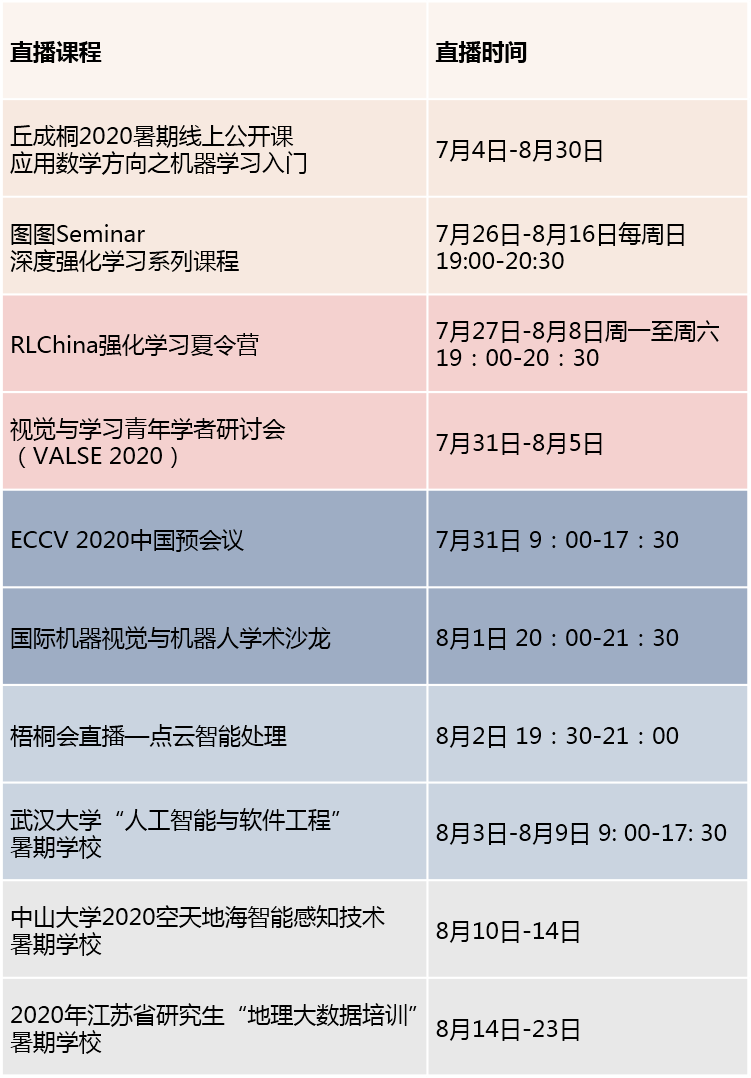 直播时间:2020年7月26日-8月16日每周日 19:00-20:30