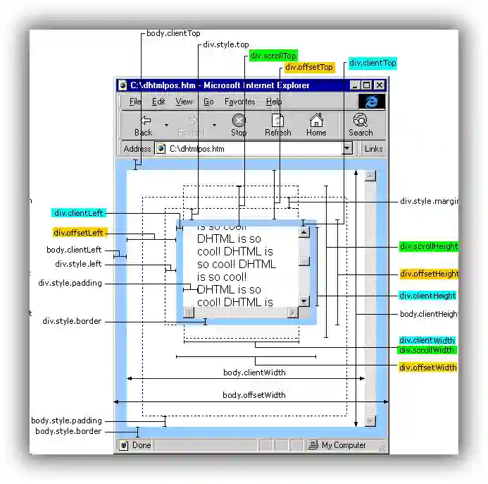 在下开发中经常碰到 offset、scroll、client 这几个关键字,比如 offsetLeft、offsetHeight、scrollHeight、clientTop 什么的,每次都要各种实验,这里总结一下,一劳永逸。