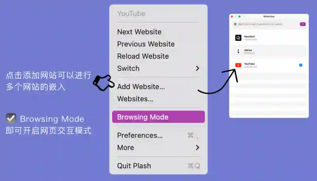 Plash 是一款开源应用,应用图标本身就很可爱,小小的水滴状💧,特别像动森里幽幽每次受惊吓之后飞散的「小幽幽」。但是,可不要小看这个水滴,这款应用可以说是万能的,不管你想要效率还是可爱类的桌面展示,Plash 都可以轻松帮你完成。