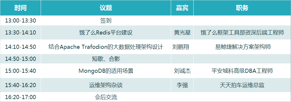 10月27日,一场以数据架构与数据优化为主题的技术沙龙即将在上海展开!本次沙龙特邀来自饿了么、平安城科、易鲸捷及天天拍车的四位数据架构与优化专家,与大家共同分享新鲜案例,提升数据洞察能力!
