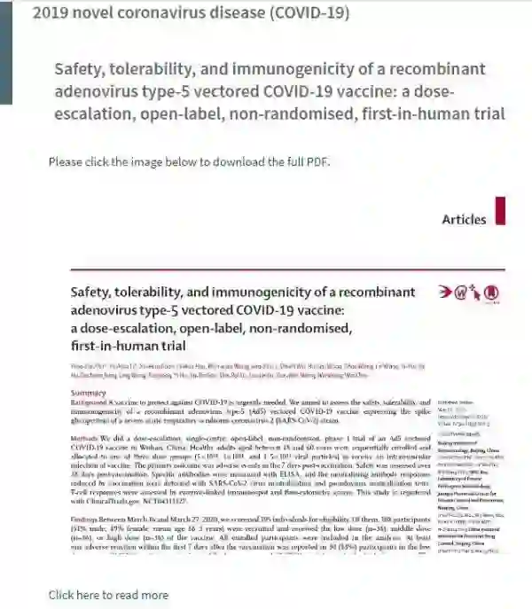“据我们所知,这是Ad5腺病毒载体新冠疫苗的‘首次人体试验’(FIH)的首个研究报告。”该论文写道。