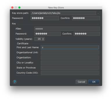 一开始,我们用 Android Studio 生成一个缺省的 App,创建密钥库(Keystore)
