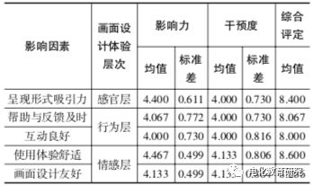 表3 影响学习投入的移动学习资源画面设计因素层次及评定