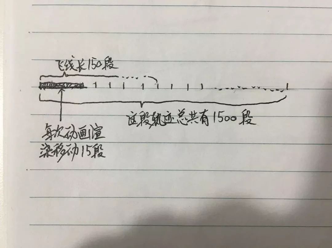 首先需要确定绘制飞线是由多少段小线段组成的(实际是由多少个圆相临近堆叠成的),接着我们就可以按照由浅及深的顺序开搞了。